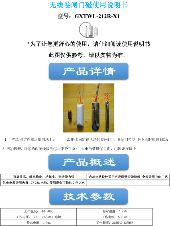 无线卷闸门磁使用说明书